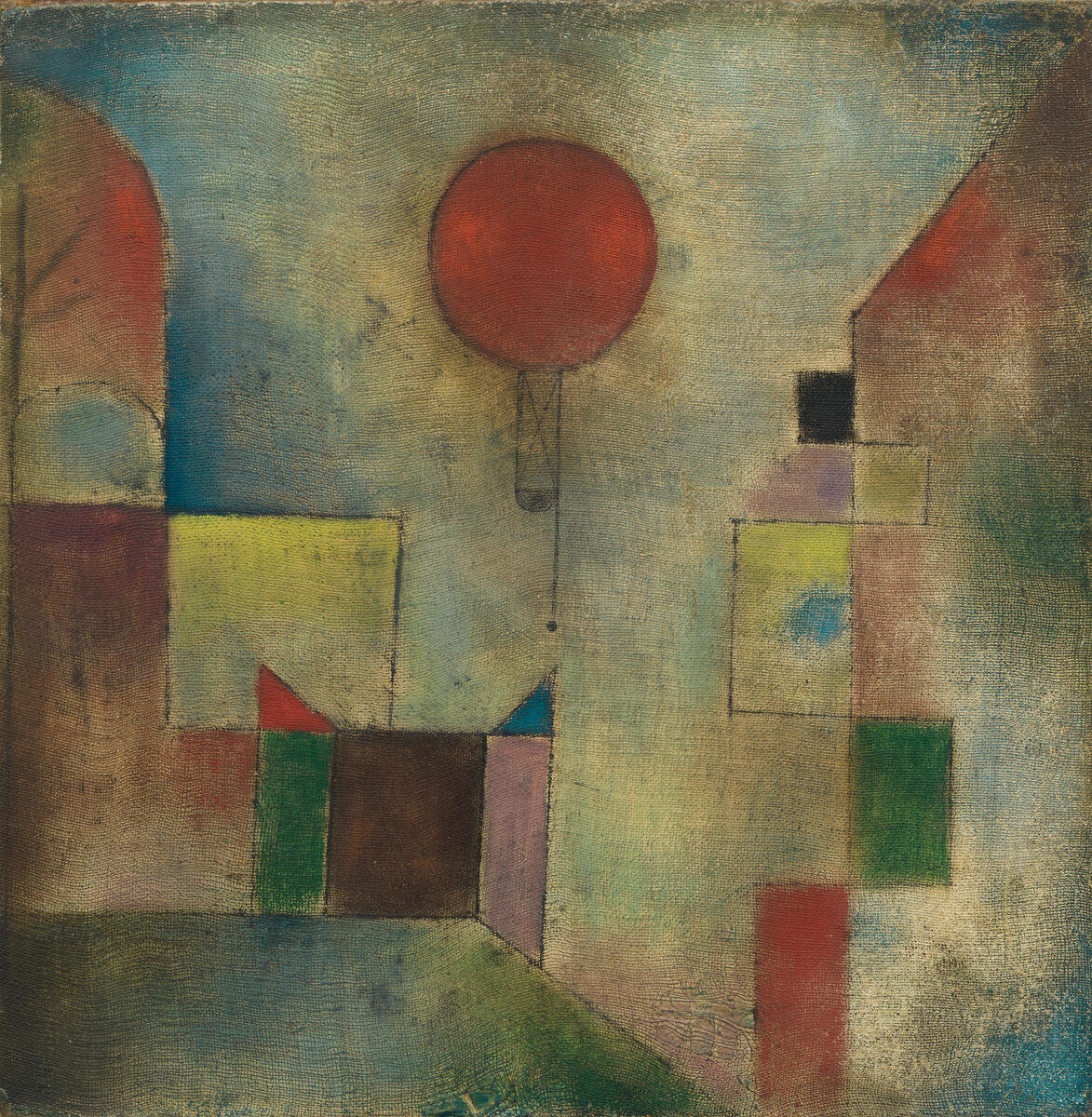 As part of the early 20th-century avant-garde, Klee formulated a personal abstract pictorial language. Although much of his work is figurative, compositional design nearly always preceded narrative association. The artist often transformed his experiments in tonal value and line into visual anecdotes. Red Balloon, for example, is at once a cluster of delicately colored, floating geometric shapes and a charming cityscape.